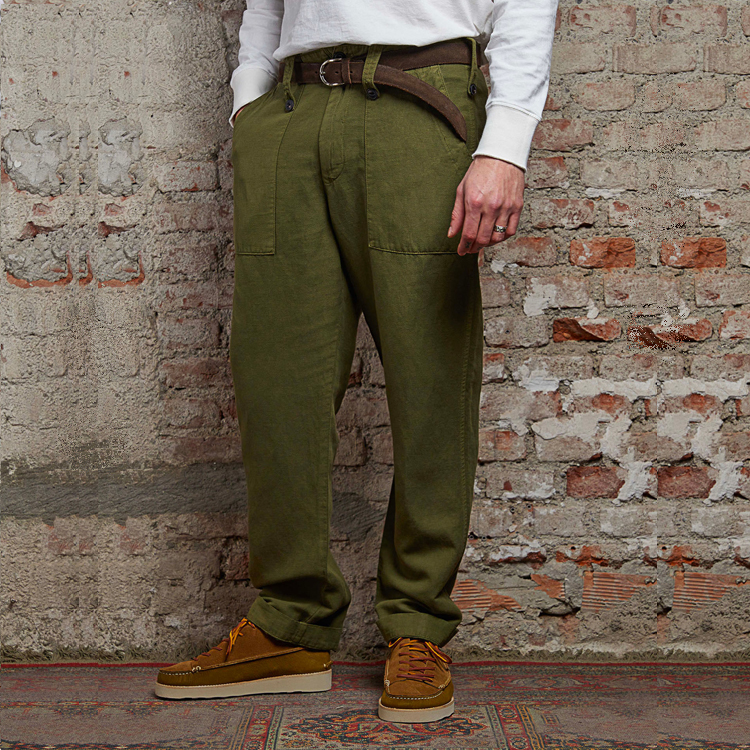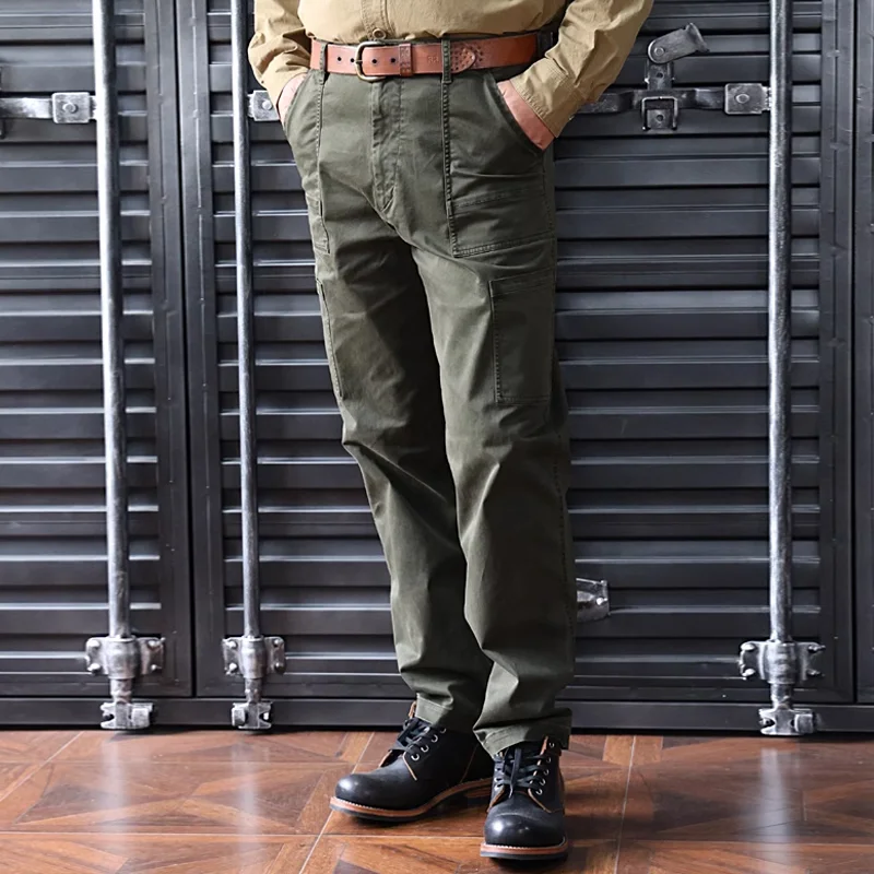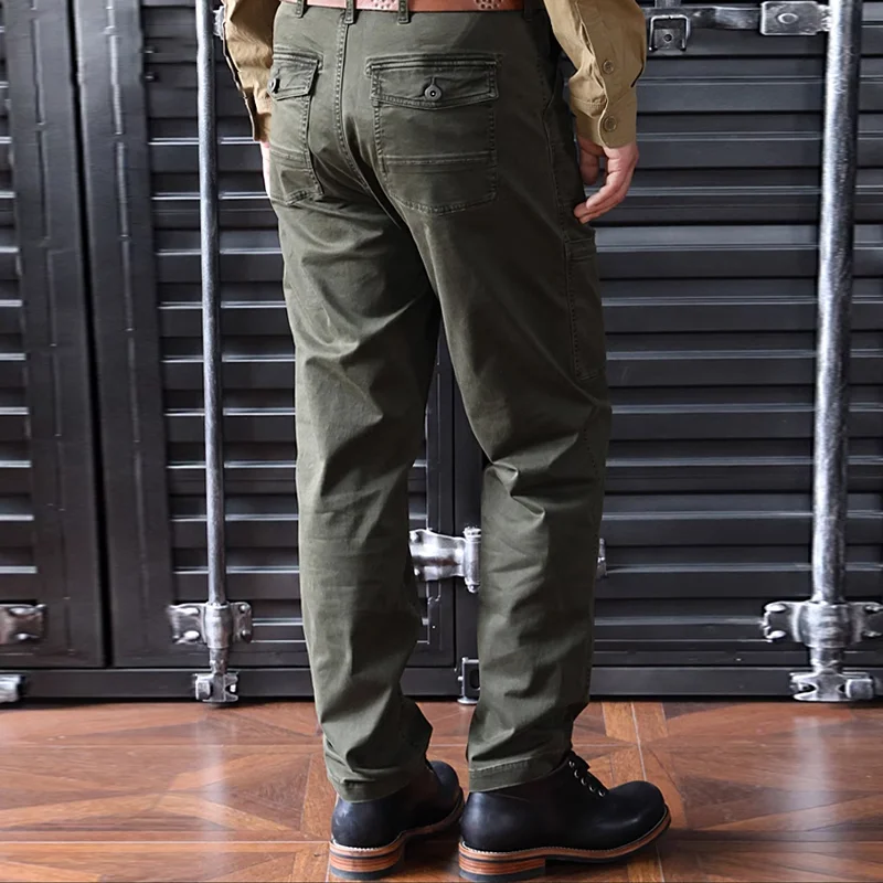Men's Work Casual Pants Vintage Army Green Washed Pocket Pants