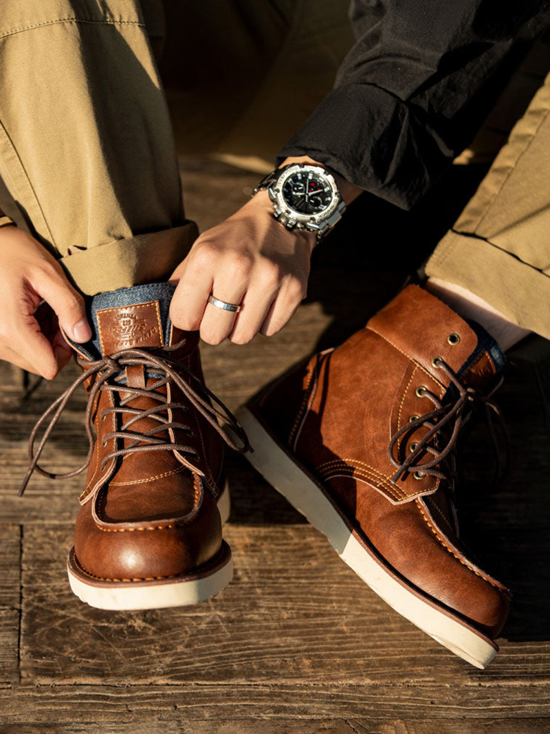 Men Cow Leather Non Slip Hand Stitching Soft Sole Casual Outdoor Boots