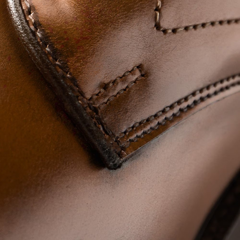 • Double-layer, Italian vegetable-tanned leather soles that are hand stained and painted with a two-tone finish